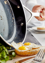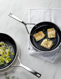 Met deze twee robuuste en tegelijk lichte Alu Pro 5 koekenpannen van 24 en 28 cm bak je naar hartenlust kippenspiesjes, cordon blue, witlof, aardappelschijfjes, gepaneerde groenteburgers enzovoort, zonder aanbakken. De krasbestendige keramische Ceraforce® antiaanbaklaag – vrij van PTFE – biedt je bovendien een gezonde oplossing. Je bereikt een perfect resultaat met minder vetstof. Gebruik enkel accessoires van hout of silicone, om beschadiging te voorkomen. De body’s van gesmeed aluminium zijn eextra dik een heel stevig. Dankzij de unieke Radiant® bodem zijn en blijven je pannen extra stabiel en in optimaal contact met de kookplaat. De warmte wordt egaal verdeeld. De exclusieve TriplInduc® technologie presteert perfect op inductie. Je hebt tot 30% minder energie nodig voor dezelfde temperatuur. Deze pannen reageren supersnel zodra je overschakelt naar een andere kookstand. Leg je hem vol met koude ingrediënten, rechtstreeks uit de koelkast, dan is hij snel weer op de juiste temperatuur. Met Alu Pro 5 haal je doordacht en makkelijk hanteerbaar design in huis, met een ijzersterke prijs-kwaliteitverhouding. Het matzwarte gesmede aluminium contrasteert prachtig met de blinkende roestvrijstalen greep. Deze lichtgewichten hanteer je supermakkelijk en reinigen gaat bijna vanzelf. Ben je een liefhebber van grillen in de oven of van flamberen? Dan heb je ook een pan zonder antiaanbaklaag nodig.