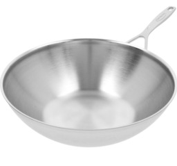 Met deze onverwoestbare roestvrijstalen wokpan van 30 cm doorsnede kan je naast roerbakken bovendien ook stomen, stoven én karamelliseren. Het solide 5-lagenmateriaal tot aan de rand verspreidt de warmte vlot. De pan wordt heet in het midden en naar de randen toe geleidelijk koeler. Ideaal om te roerbakken.