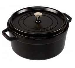 Deze Staub braadpan, ook wel cocotte genoemd, is gemaakt van massief gietijzer. Gietijzer staat erom bekend dat het uitstekend warmte vasthoudt en deze warmte geleidelijk en zeer gelijkmatig verspreidt. Eenmaal heet kun je het pitje lager zetten. Het omgekeerde geldt ook, de pan blijft ook langer koel. Zo kun je je gerechten ook buiten de koelkast langer koel houden op een hete zomerdag. Deze eigenschappen maken gietijzeren pannen perfect om in te koken, braden en stoven.