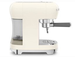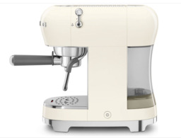 De Smeg 50's style halfautomatische espressomachine is vervaardigd uit creme kunststof en roestvrij staal en bereidt espresso uit gemalen koffiebonen en ESE-servings.